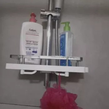 I got this for my wife to keep her shampoo bottles off the shower floor. It works perfectly, and our shower floor is now clear.